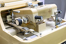 Takubomatic | Historický přístroj na zabrušování dioptrických skel podle ručně dělaných šablon.